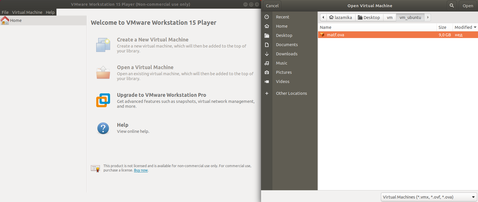 virtuelnu mašinu "Ubuntu 64bit.vmx" koja se nalazi u prethodno otpakovanom fajlu.